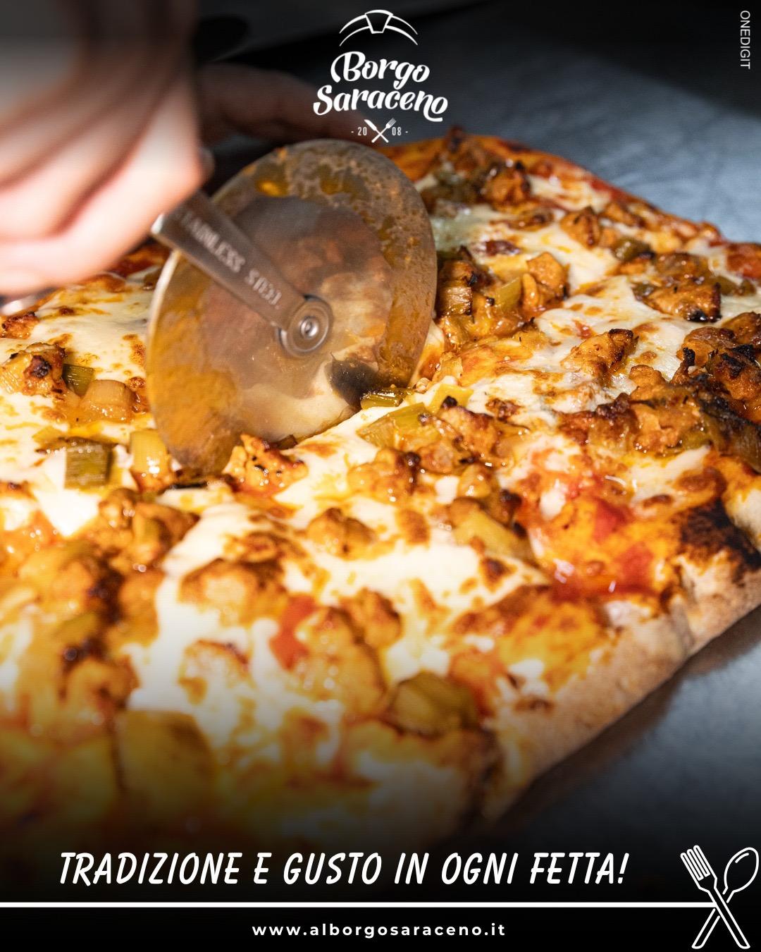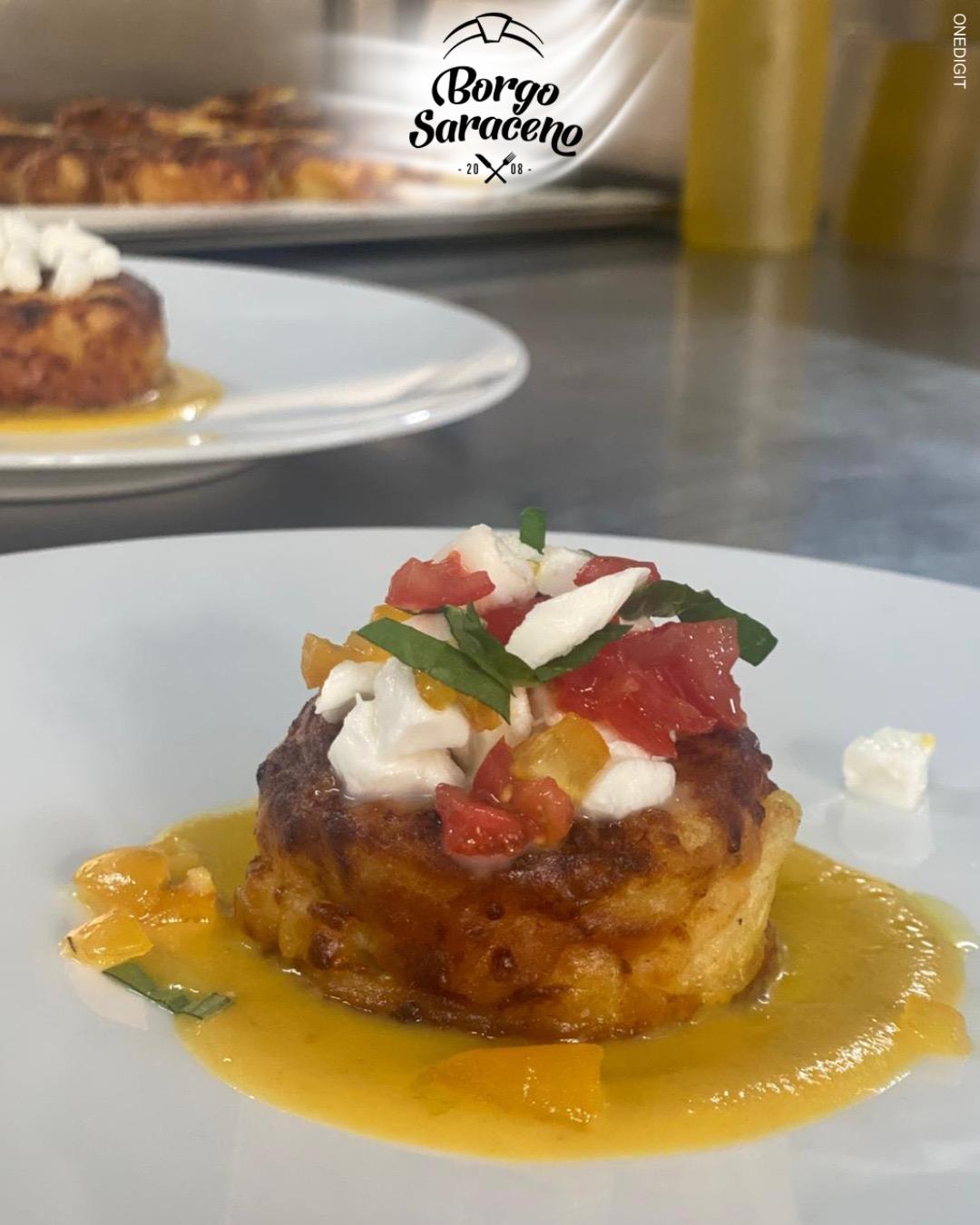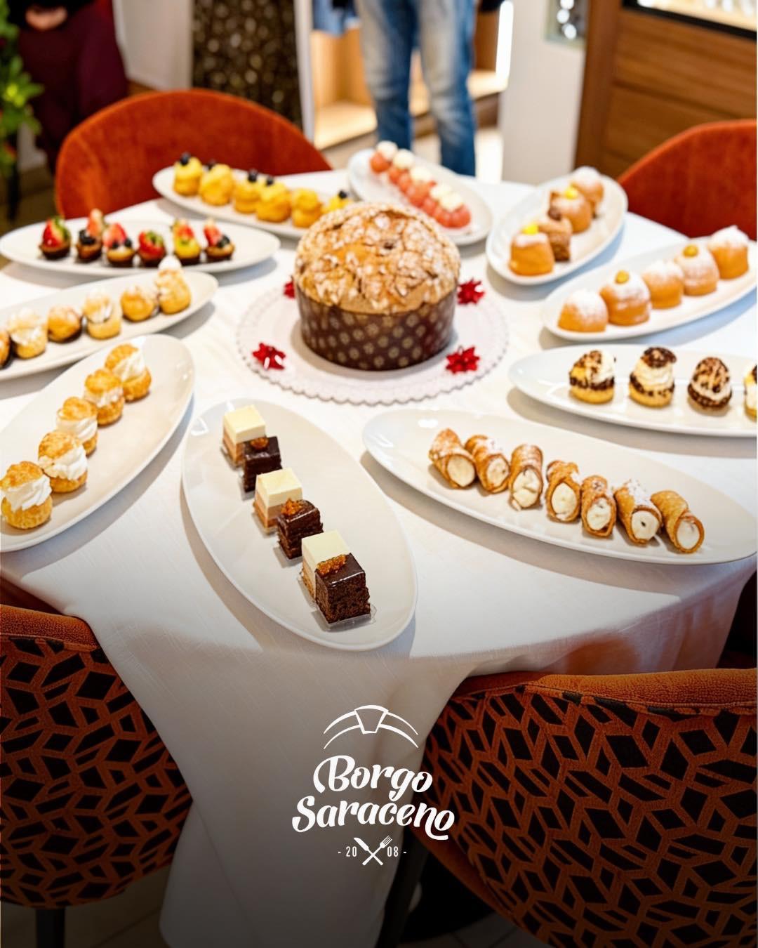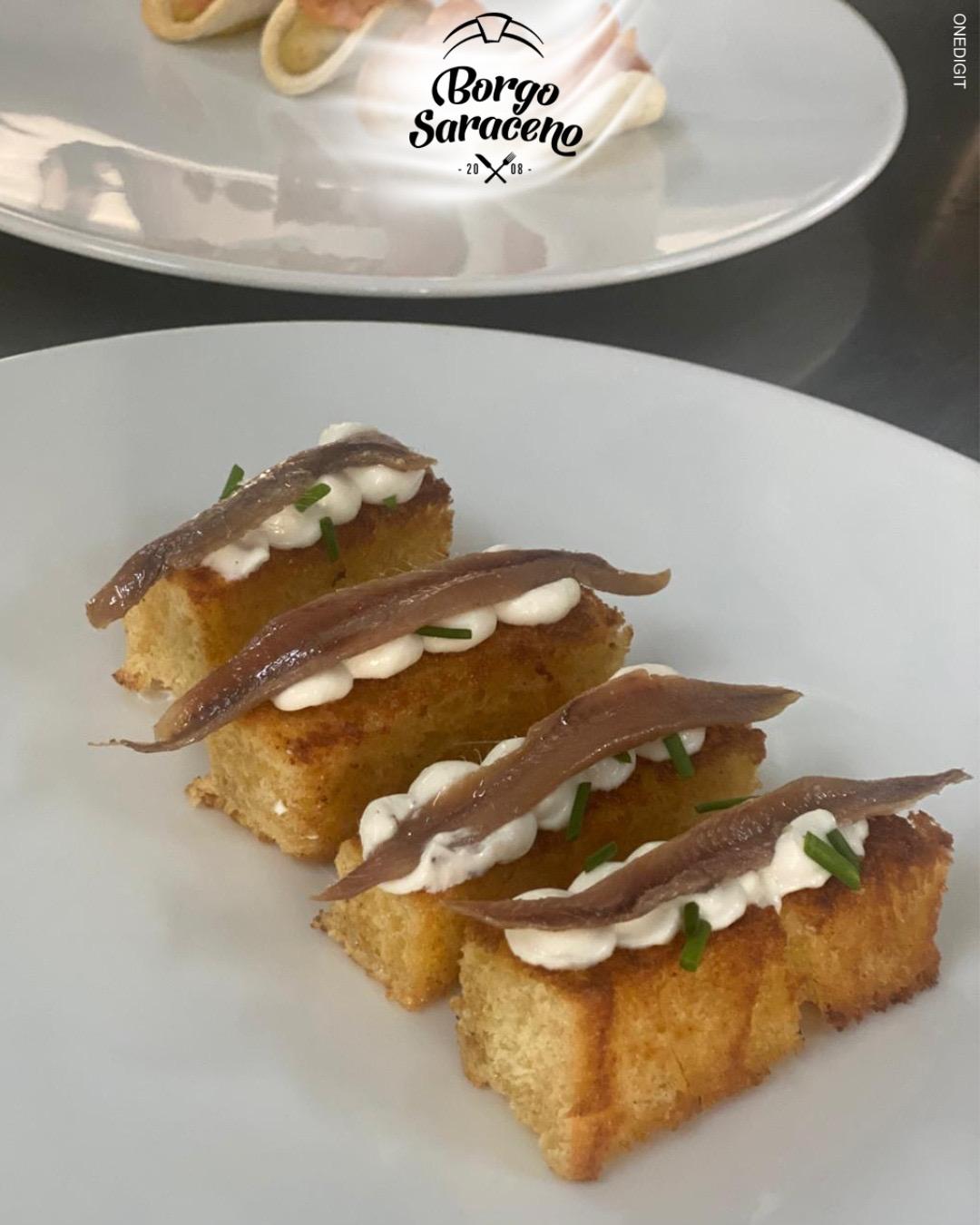 Das Ristorante Borgo Saraceno ist der ideale Ort, um die Küche der Region in einer warmen und authentischen Atmosphäre zu erleben, wo der Genuss am Tisch mit der Einfachheit der lokalen Traditionen verschmilzt. Hier wird jede Mahlzeit zu einem Moment, den man in Ruhe teilen kann, umgeben von echten Aromen und saisonal inspirierten Kombinationen, stets im Einklang mit der gastronomischen Kultur der Gegend.