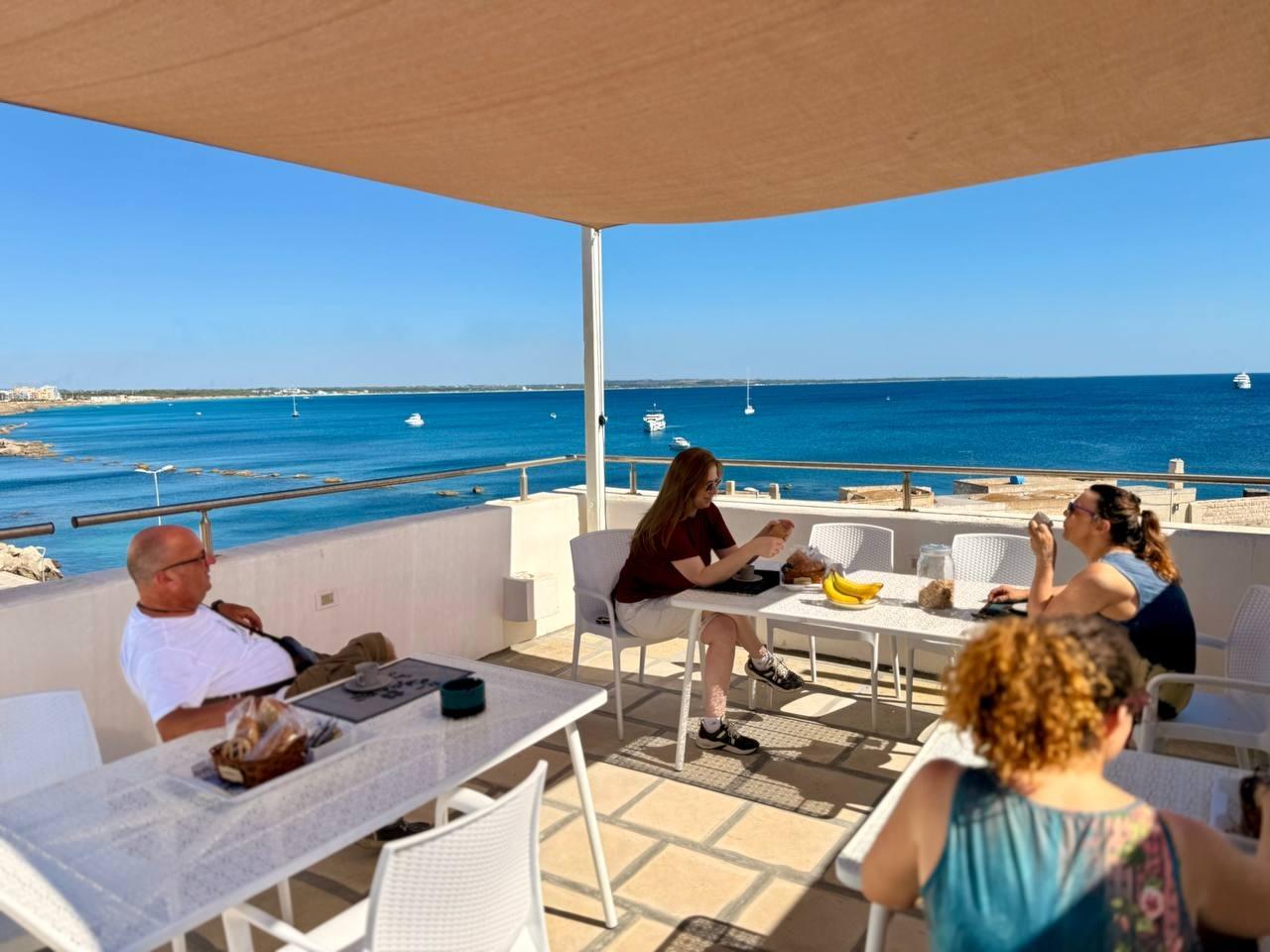 Das Frühstück wird als Selbstbedienung auf der Terrasse oder in der nahegelegenen Bar Fontana Greca, nur wenige Schritte von der Unterkunft entfernt, angeboten und ist als authentischer italienischer Genussmoment gedacht. Jeden Morgen können Sie frische Produkte und lokale Spezialitäten, begleitet von Kaffee, Cappuccino und anderen Heißgetränken, in ungezwungener und entspannter Atmosphäre mit Blick auf den Yachthafen genießen. Ein einfacher und authentischer Start in den Tag, eingetaucht in das tägliche Leben von Gallipoli.