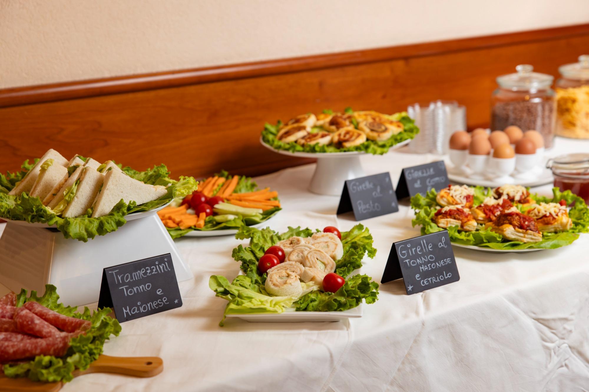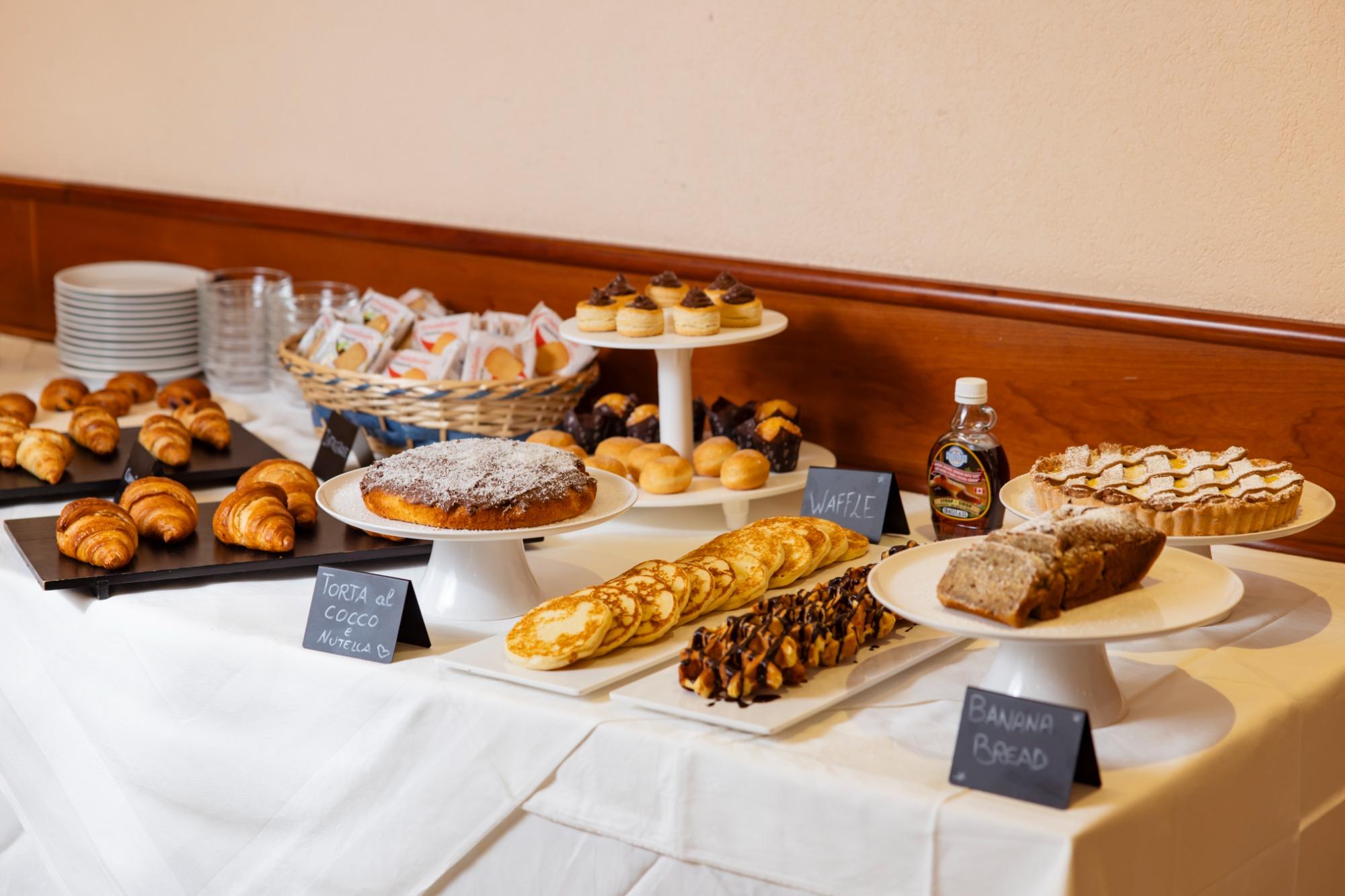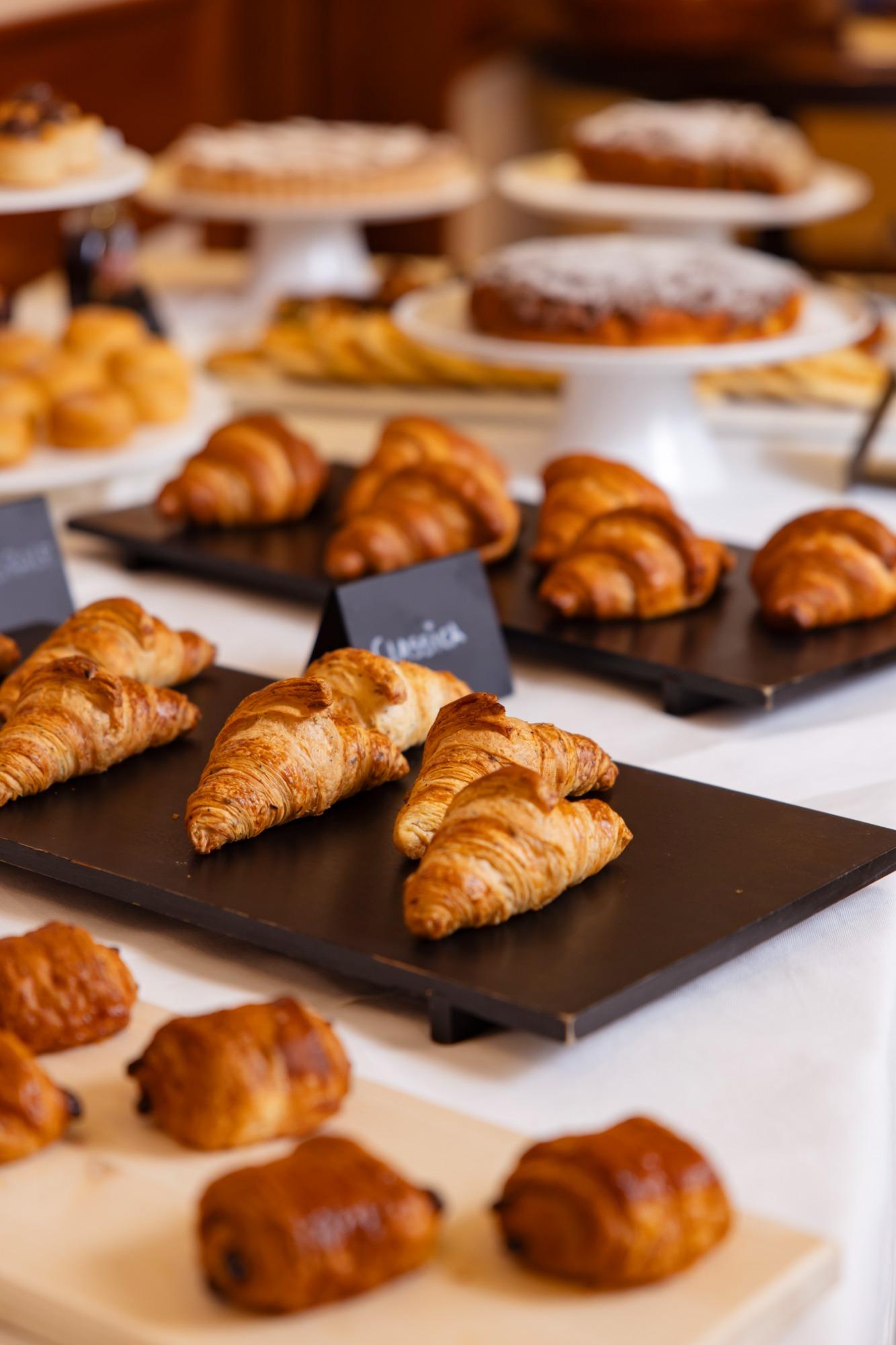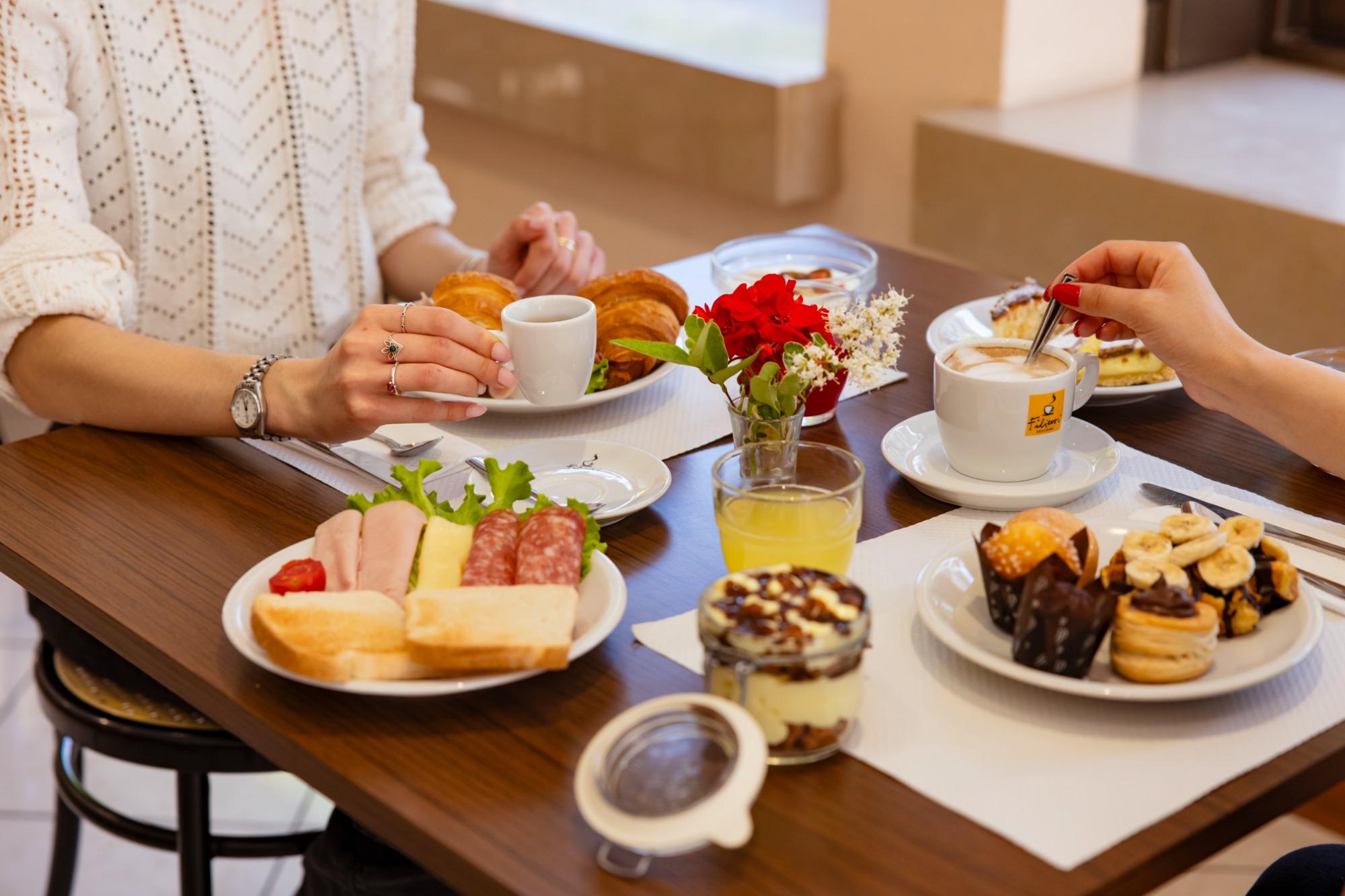 Das Frühstück wird in einem klimatisierten und einladenden Ambiente in Form eines Buffets angeboten, mit einer breiten Auswahl, die auf unterschiedliche Vorlieben abgestimmt ist. Neben Croissants, Kuchen und Gebäck stehen Wurstwaren, Käse und frisches Brot zur Verfügung, sowie Joghurt, Müsli, Marmelade und Aufstriche. Das Angebot wird durch Fruchtsäfte, frisch gepressten Orangensaft und einen Kaffee-Service mit frisch zubereiteten Heißgetränken ergänzt, um den Tag mit Energie und Genuss zu beginnen.