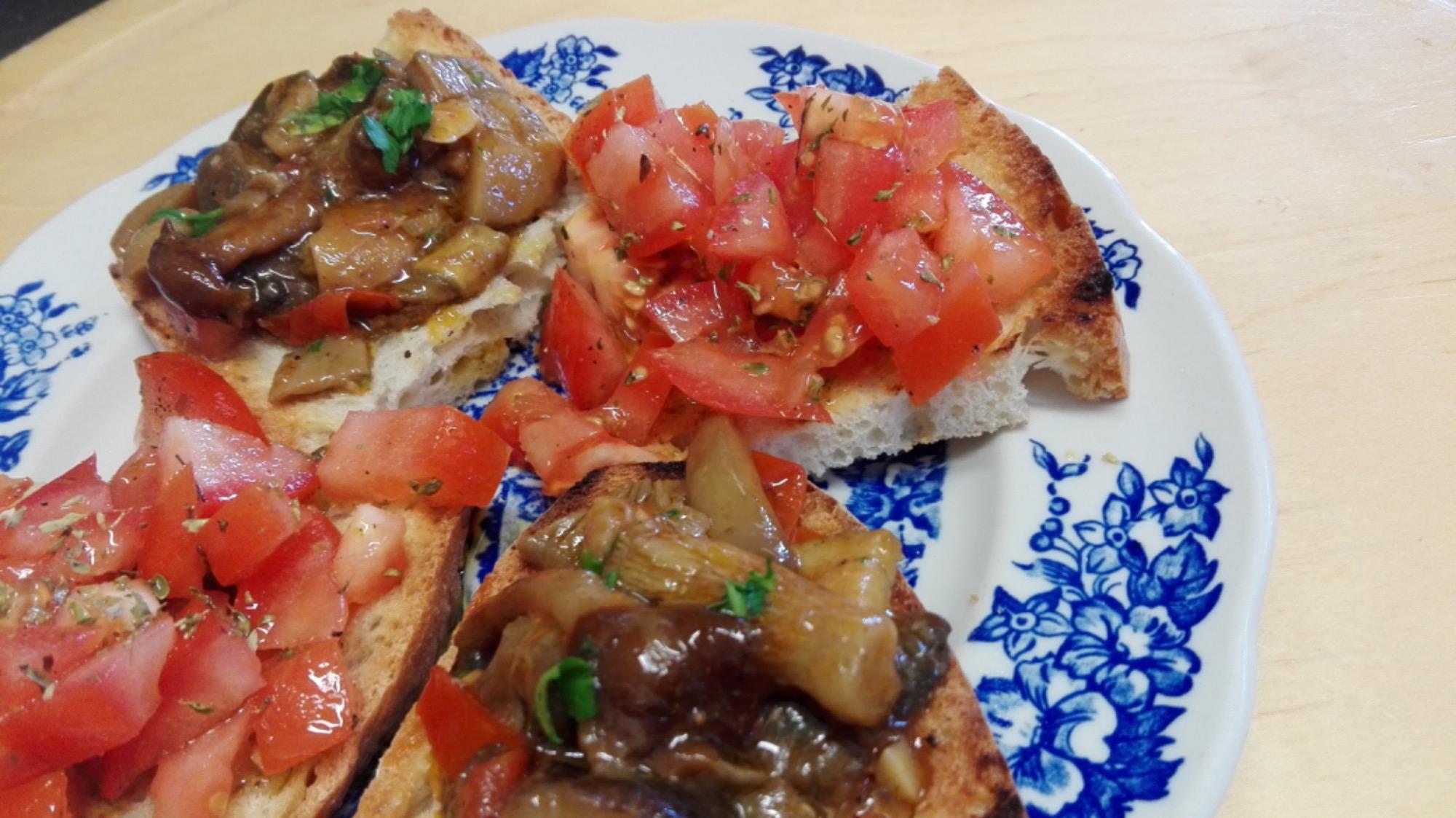 Warme Crostoni aus Holzofenbrot mit Guanciale, Trüffeln und Steinpilzen. Und dann noch Crostoni mit frischer Wurst, frischem Pecorino und Pilzen. Leckerer Bruschetta, Wurst- und Käseplatten. Frische Ziegenkäse aus biologischer Rohmilch vom Hirten aus Greve in Chianti.