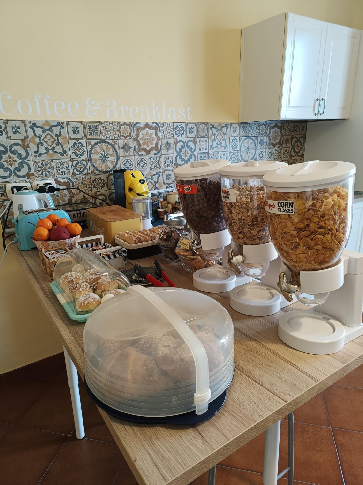 In the morning an Italian breakfast is served with fresh croissants cakes tarts