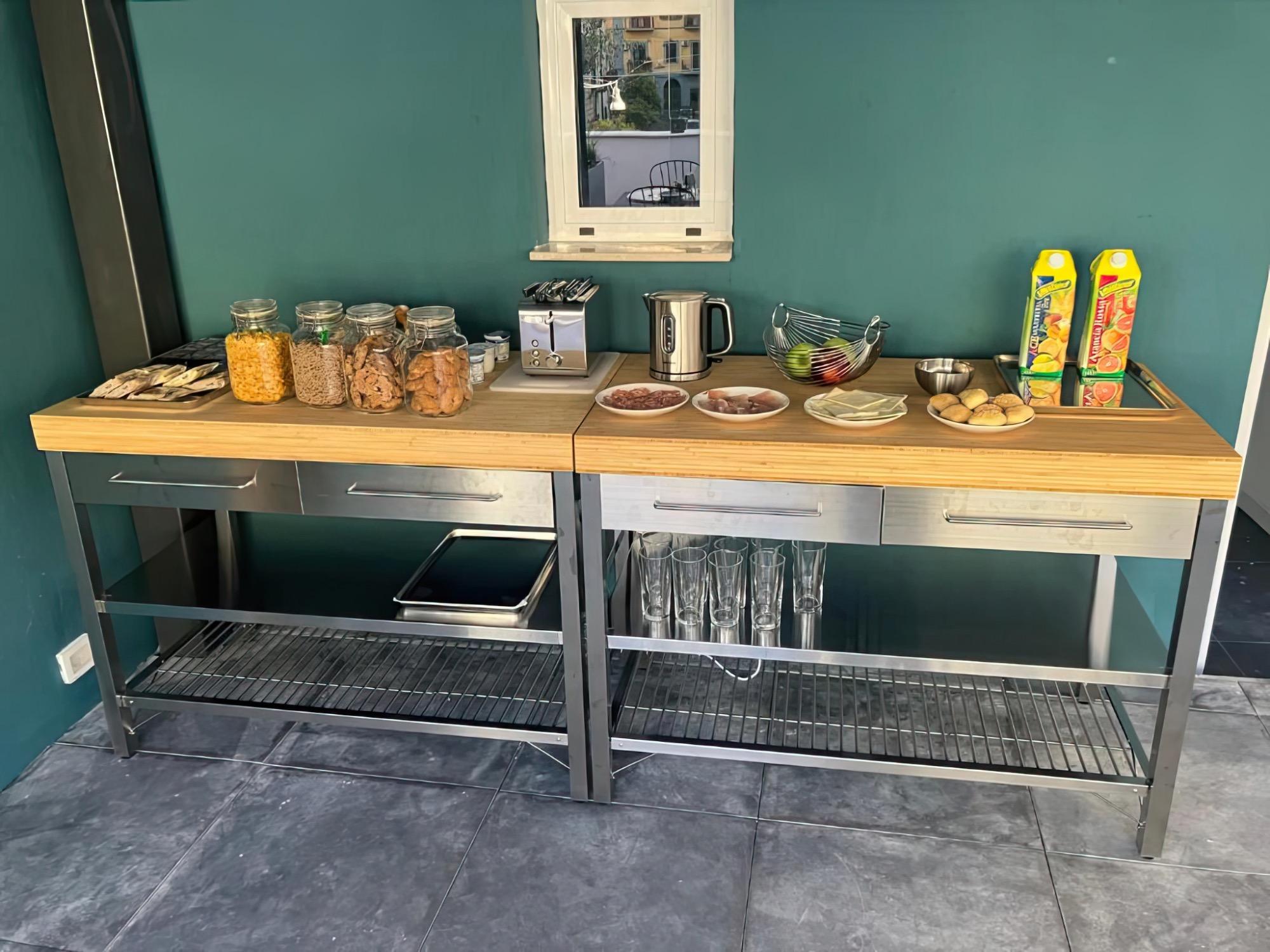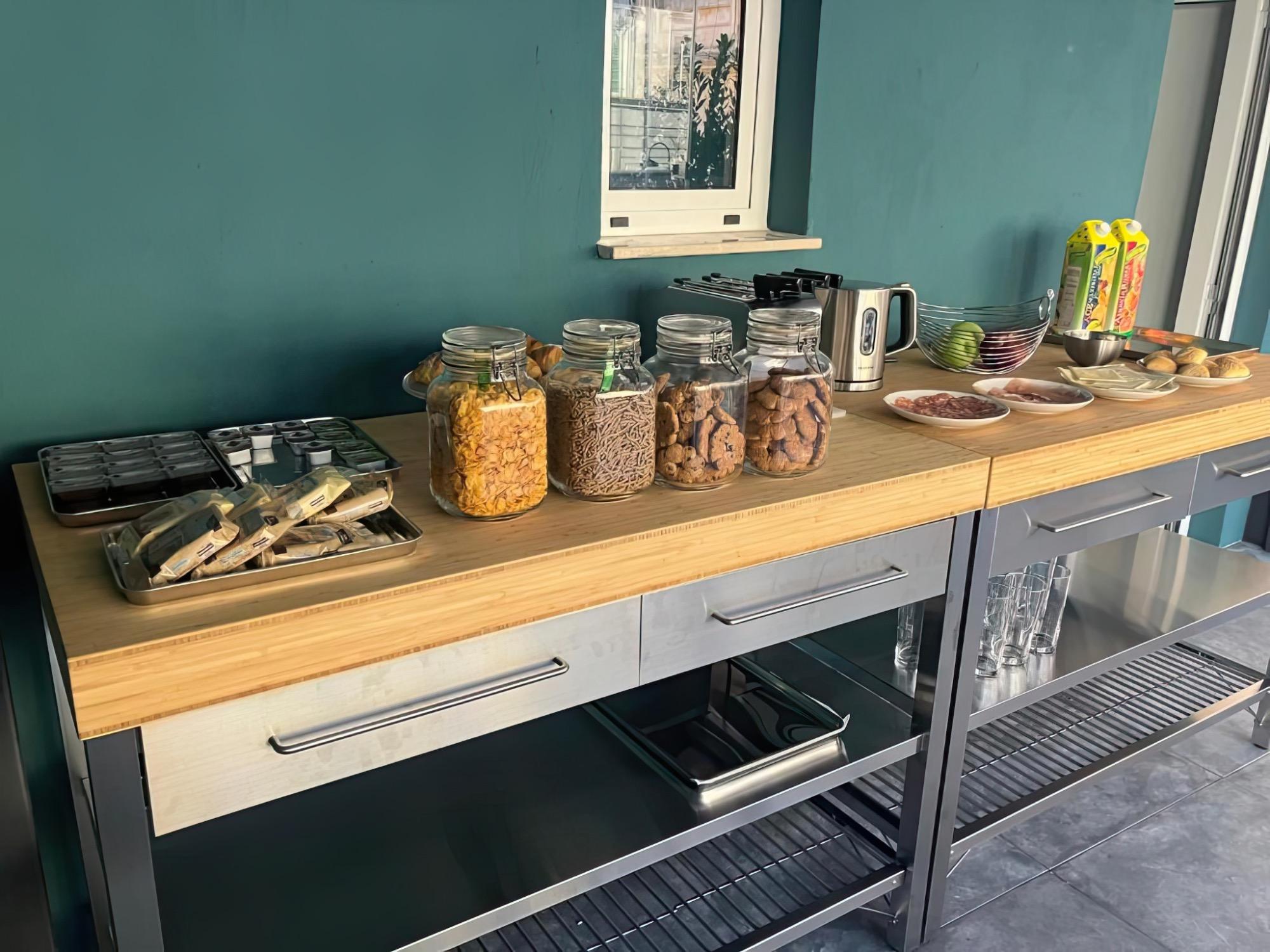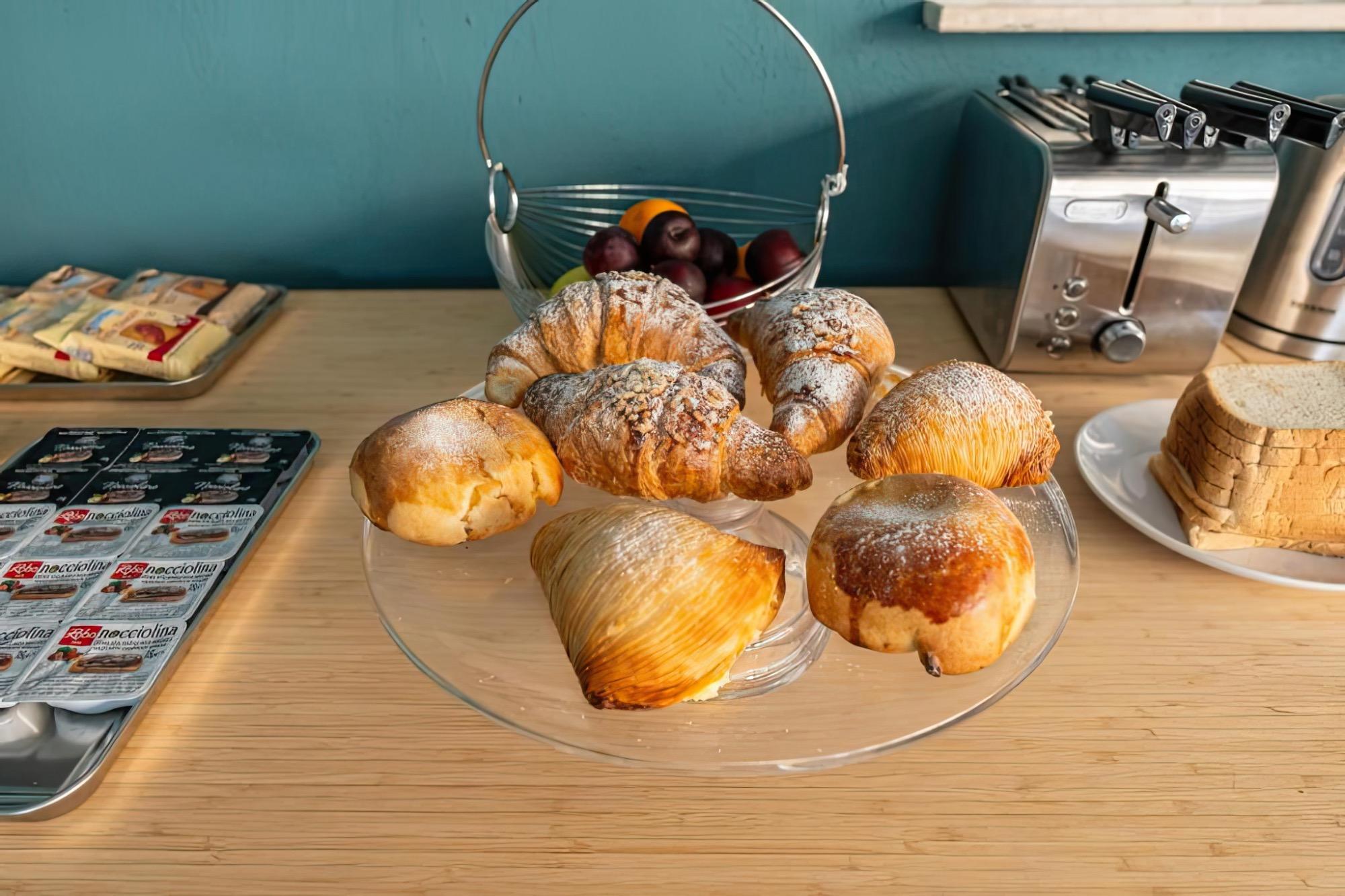 The buffet features specialties from Italian tradition, with a selection of sweet products, hot beverages, and juices, designed to cater to various tastes and provide the right energy before setting off to explore Naples. It's a pleasant and communal moment that enhances the stay with a touch of flavor and attention to detail.
