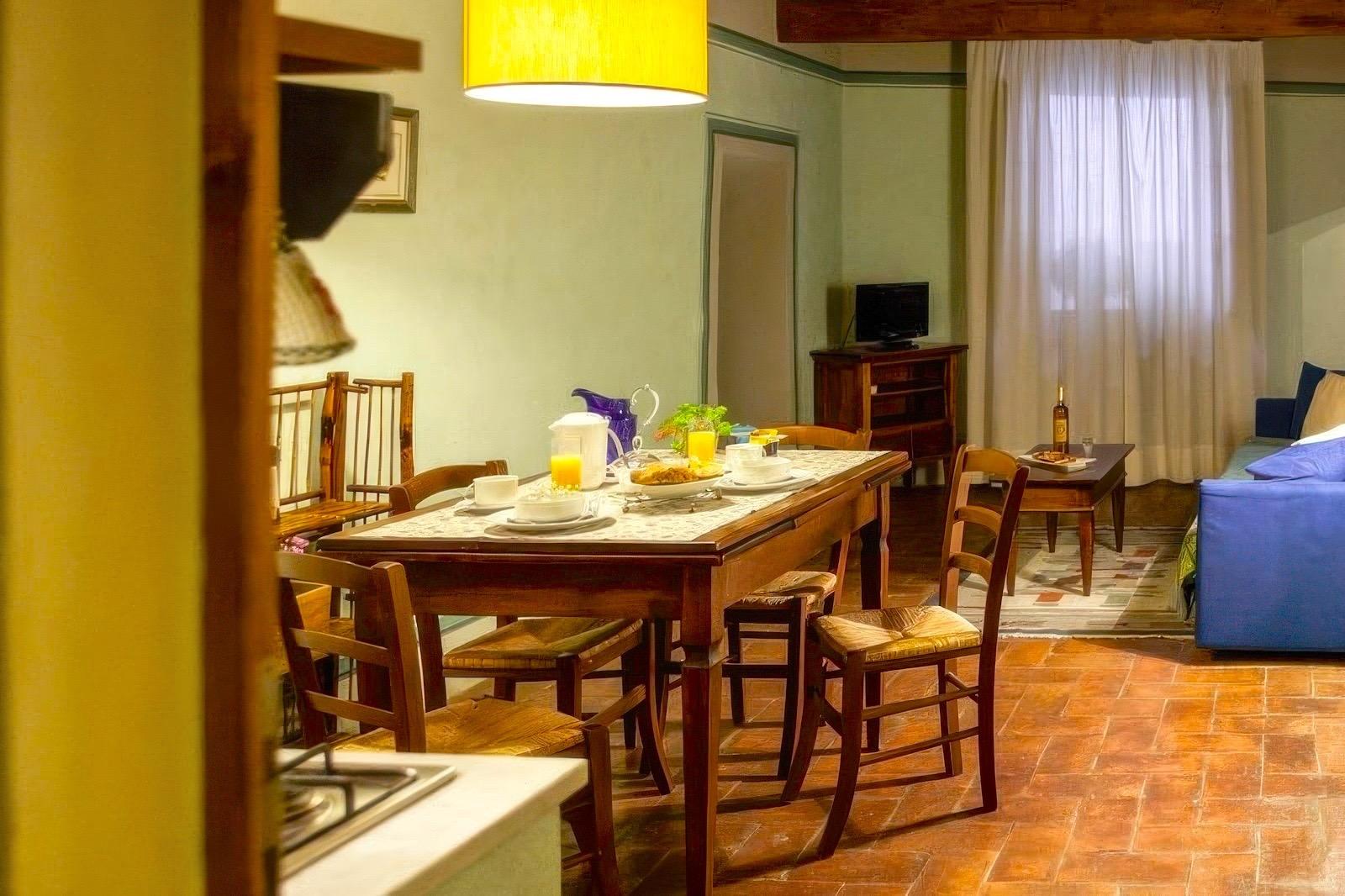 El despertar en la Posada Il Pino tiene un sabor especial, gracias a un desayuno pensado para comenzar el día con tranquilidad y placer. Por la mañana, se desciende a las salas de la planta baja, espacios encantadores de piedra, adornados con arcos medievales que crean una atmósfera particularmente cautivadora. Es un momento que invita a relajarse: aromas tentadores, silencio y el sabor de una pausa dedicada a uno mismo antes de salir a explorar el pueblo.