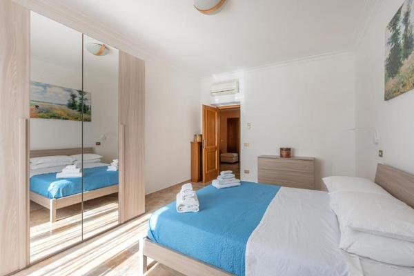 L’appartamento offre ambienti ampi, luminosi e appena rinnovati, con due camere da letto separate, una con letto matrimoniale e l’altra con due letti singoli unibili. La zona giorno è pensata per momenti di relax, con un comodo divano e una Smart TV da 55 pollici. La cucina è moderna e ben organizzata, completa di lavastoviglie, microonde e macchina Nespresso Original, ideale per chi desidera sentirsi a casa anche in viaggio. Il bagno, recentemente ristrutturato, dispone di tutto il necessario per un soggiorno confortevole. Asciugamani e biancheria sono sempre forniti.
