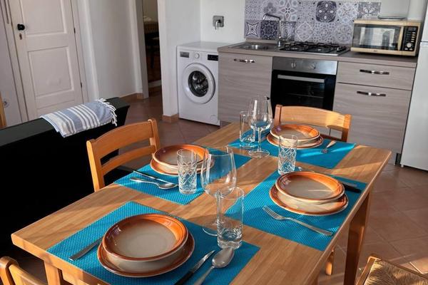 Dispone di due camere da letto (una matrimoniale e una con due letti singoli), salotto con angolo cottura, bagno con doccia e di un piccolo patio esterno privato.