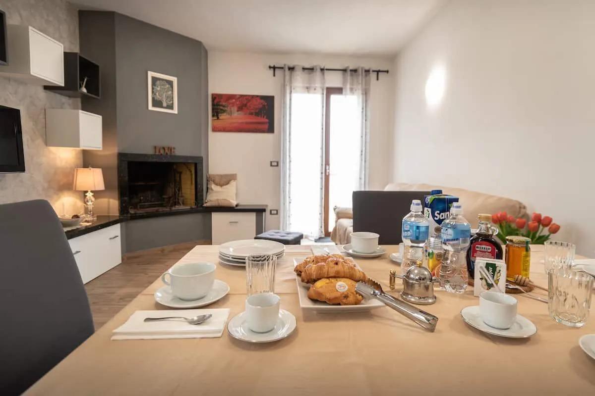 Gli interni sono luminosi e organizzati con attenzione. Il soggiorno offre un’area relax con divano e TV, una zona pranzo e l’accesso a un terrazzo riservato, ideale per i momenti all’aria aperta. Le due camere, una matrimoniale e una con letto alla francese, garantiscono privacy e comfort e dispongono entrambe di affaccio esterno. L’angolo cottura è dotato di tutto il necessario per preparare i pasti in autonomia.