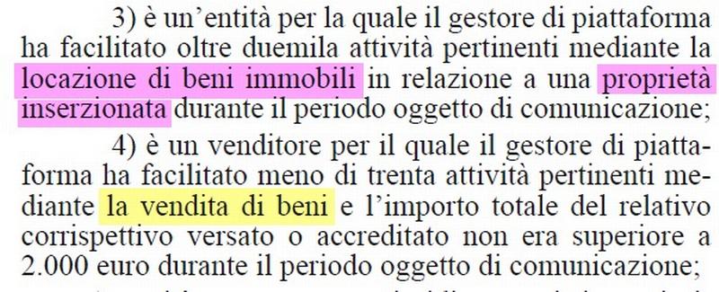 Sono escluse dalla comunicazione le strutture con meno di 30 transazioni annue per le quali non è stato raggiunto un volume di 2000 euro durante l’anno oggetto della comunicazione. * Questa esclusione inizialmenmte ipotizzata per tutte le tipologie di attività, è consentita invece solo nel caso della vendita di beni.